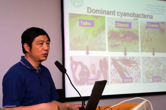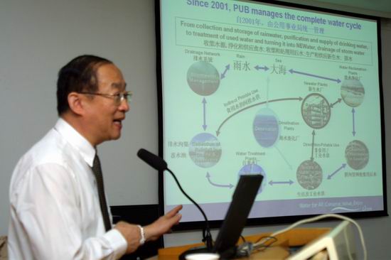 在学术交流会上,徐旭东副所长向来宾介绍了水生所的研究中心设置及主要研究方向。杨兆光博士和张立峰博士共同作了题为“新加坡水资源管理及水质安全保证”的报告,杨兆光博士就新加坡水资源现状、城市供水及污水处理工艺及水质检测方面的先进技术与管理经验进行了综述,张立峰博士介绍了目前该中心正在进行城市水源安全与反恐技术方面的研究课题;水生所宋立荣研究员作了题为“中国淡水水体中蓝藻有害代谢产物的产生、归趋、风险性及控制策略研究”的报告,介绍了我国富营养化湖泊中蓝藻有害代谢产物(毒素和异味物质)的污染状况,及其对生态和环境造成的潜在风险性,尤其对饮用水源的影响;报告还就我所在饮用水源水体中开展的蓝藻毒素和异味物质的污染控制技术作了简单介绍。