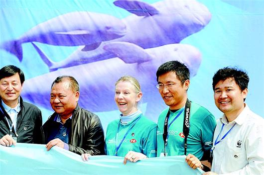 2011年8月17日,世界自然基金会组织明星志愿者张靓颖和大学生志愿者们一起探访了江豚保护项目点,发出号召——保护江豚,刻不容缓!