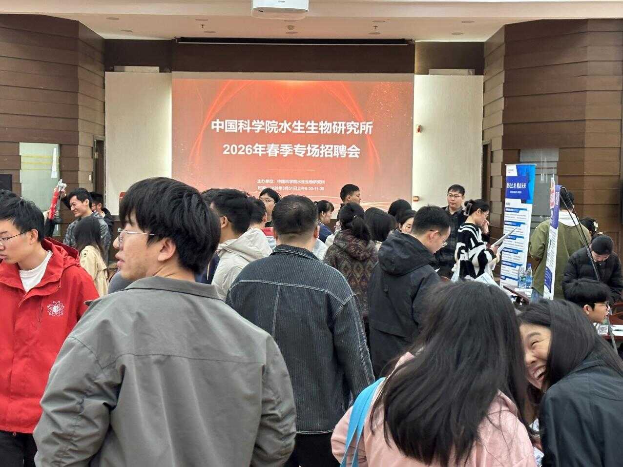 3 月 31 日上午,中国科学院水生生物研究所 举办2026 年春季专场招聘会。本次招聘会吸引了11 家行业优质单位参会,覆盖生物科技、生态环境、医药研发、科研教育等多个领域,100 余名研究生到场求职,湖北日报社记者专程到场采访报道,进一步提升了招聘会的社会影响力。