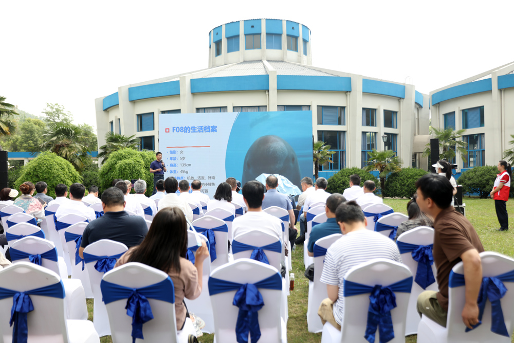 仪式现场,郝玉江副研究员介绍江豚F08