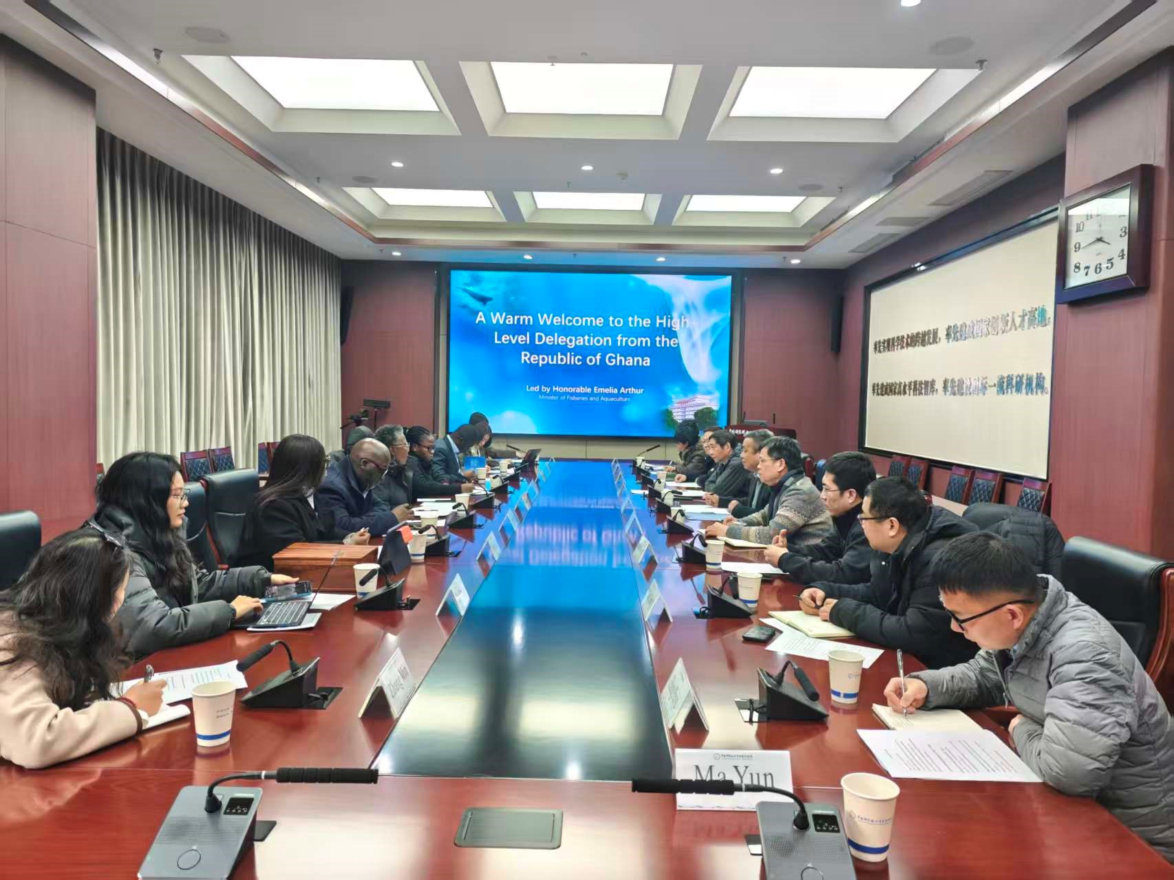 1月22日,加纳渔业与水产养殖部部长埃米莉娅·阿瑟(Emelia Arthur)率高级别代表团访问中国科学院水生生物研究所,就中加渔业生态资源调查、水产养殖技术、人才培养及生物安全体系建设等议题进行调研交流。水生所党委书记、副所长解绶启及相关科研人员、科研业务处、综合办公室相关负责人等参加调研座谈。