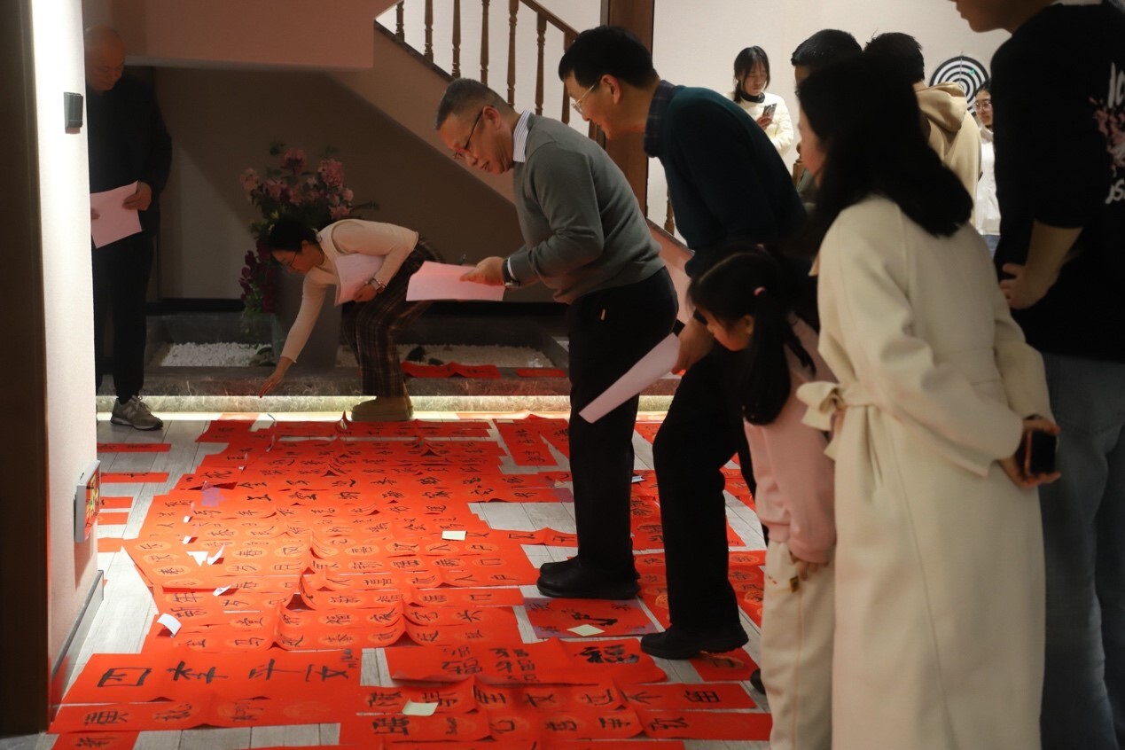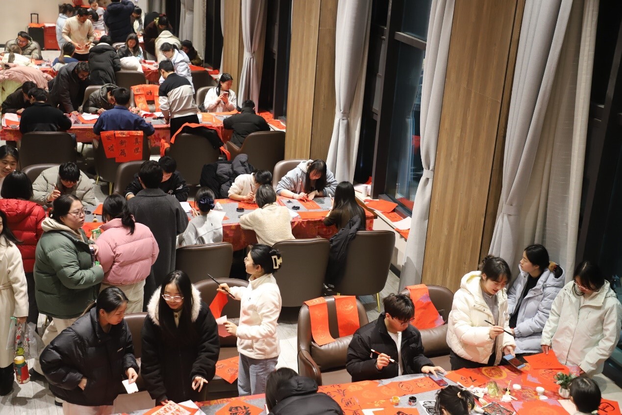 活动现场红纸铺展,笔墨齐备。参与者挥毫泼墨,一副副寓意吉祥、笔力遒劲的春联跃然纸上。“辞旧岁科研硕果盈枝头,迎新春创新活力满水生”“瑞气盈门启新程,丹心向研谱华章”等作品,既饱含祝福,也融入了科研特色,寄托了对新一年的美好期盼。