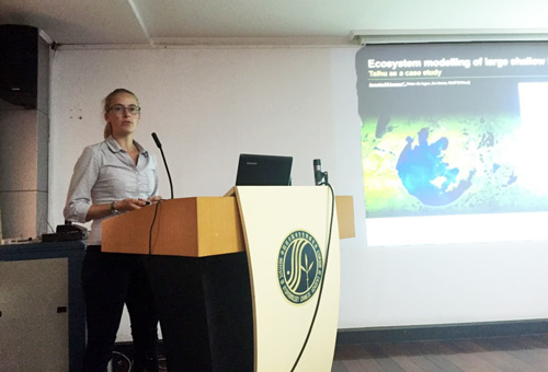 Annette作了题为“Ecosystem modeling of large shallow lakes: Taihu as a case study”的报告。由于缺乏明确可靠的治理目标,目前由水体富营养化带来的各种环境和社会问题迟迟得不到有效解决。报告中她以中国太湖为例,介绍了她的团队利用PCLake模型和Deltft3D水文动态模型对太湖水质进行评估,模型结合蓝藻水华暴发的空间异质性评估富营养化对湖泊水质的影响,为湖泊治理给出定量化的管理建议。