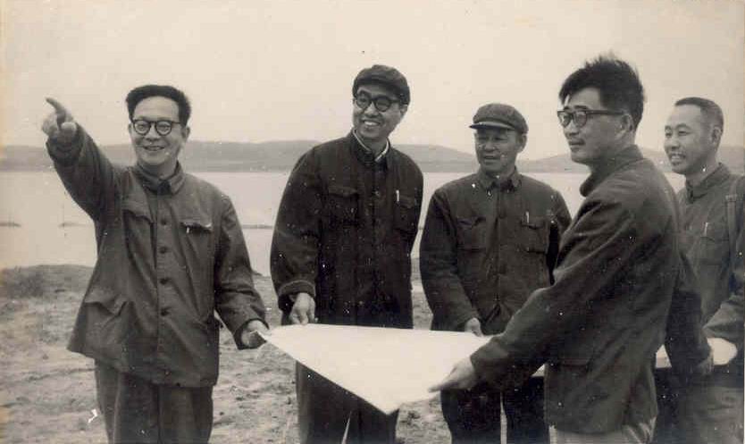 王德铭(左一)1979年与湖北省环保局领导等进行调研