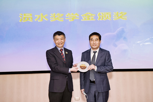 殷战所长向“涢水奖学金”的捐设人王文召先生颁发“涢水奖”捐资纪念牌