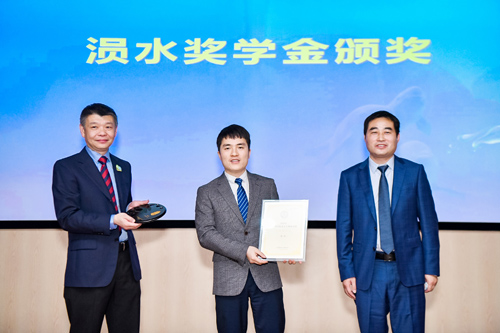 殷战所长向“涢水奖学金”的捐设人王文召先生颁发了“涢水奖”捐资纪念牌。并同王文召先生一起,为2020年度“涢水奖”获得者毕业生张东博士颁奖。