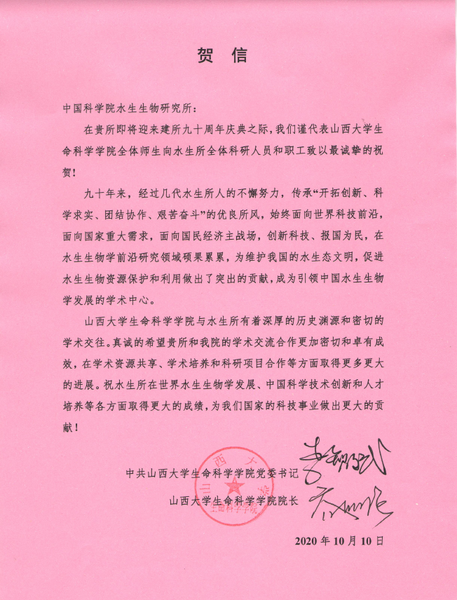 山西大学生命科学学院贺信