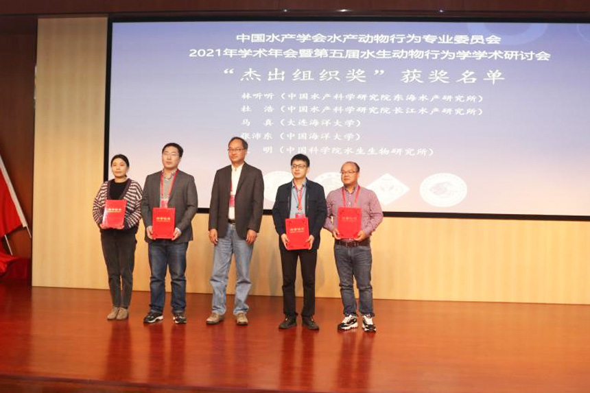 大会还颁发了“水生动物行为杰出贡献奖”和“杰出组织奖”。水生所王丁研究员、刘焕章研究员,水科院东海所庄平研究员、张东研究员,长江所危起伟研究员、上海海大宋佳坤教授、中科院海洋所杨红生研究员、中国海大王芳教授、浙江海大张秀梅教授、浙江大学刘鹰教授获得“水生动物行为杰出贡献奖”。水科院东海所林听听副研究员、长江所杜浩研究员、中国海大张沛东教授、大连海洋大学马真副教授、水生所段明副研究员获得“杰出组织奖”。