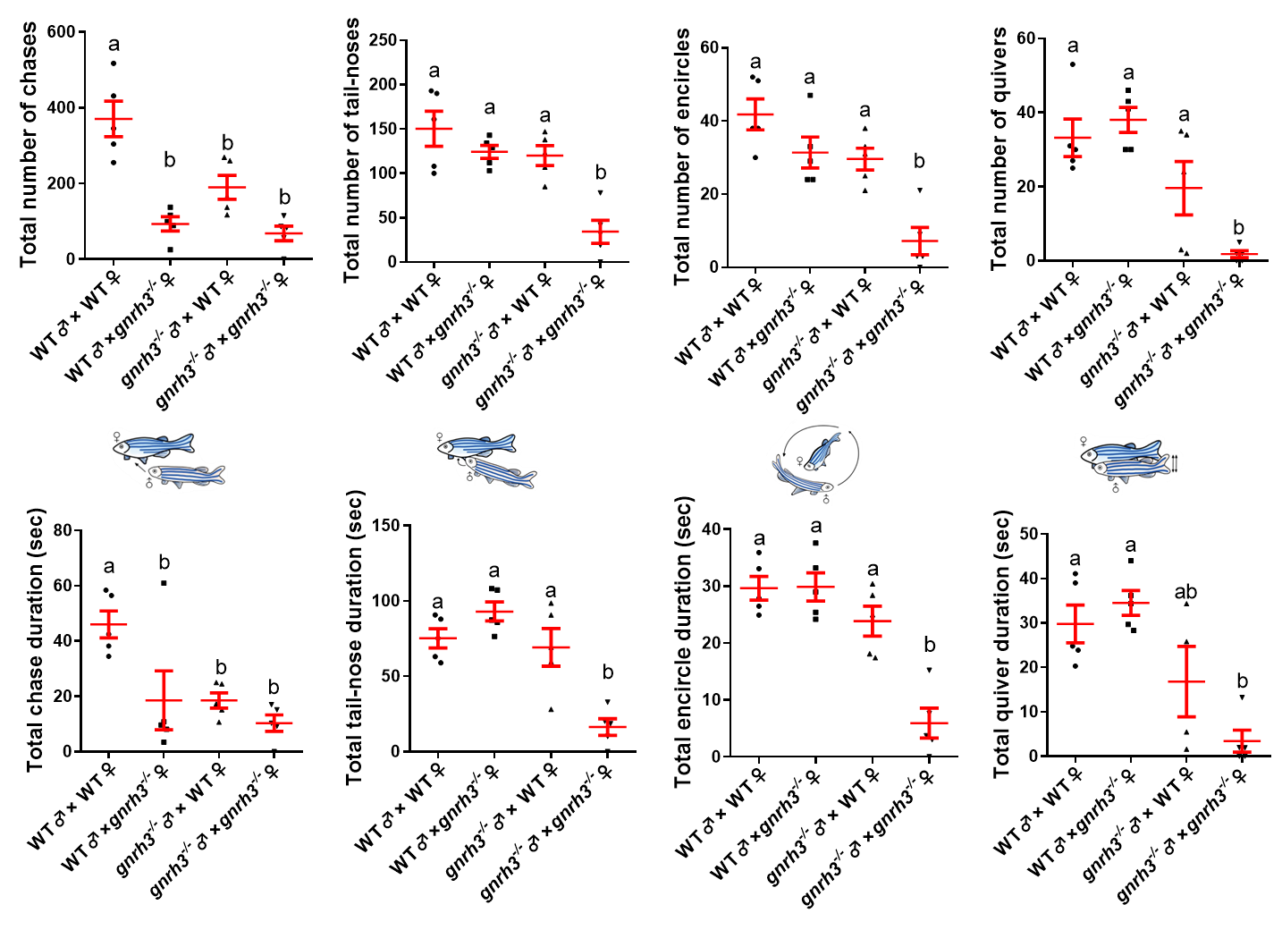 图3 gnrh3突变导致斑马鱼求偶行为障碍