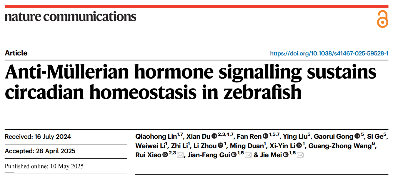 水生所为该论文的第一完成单位,水生所特别研究助理林桥洪博士、武汉大学医学研究院和泰康生命医学中心杜贤博士(现工作于武汉市第一医院)、水生所助理研究员任帆博士为论文的共同第一作者,水生所梅洁研究员、桂建芳院士、武汉大学医学研究院和泰康生命医学中心肖锐教授为论文的共同通讯作者。水生所周莉研究员、段明研究员、李熙银研究员、李志高级工程师、博士毕业生李威威,中国科学院上海营养与健康研究所王光中研究员和华中农业大学博士毕业生巩高瑞、研究生刘颖等共同参与了此项研究;生物钟相关分析得到了比利时VIB-KU Leuven脑与疾病研究中心刘沙教授的协助。该研究得到了国家重点研发计划、武汉市自然科学基金、湖北省科技重大专项、湖北省杰出青年基金和国家自然科学基金等项目的资助。
