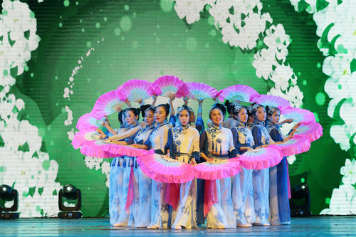 扇子舞《茉莉花》为水生所17级研究生编排的舞蹈,因其曼妙的舞姿和柔美的舞台效果被安排在晚会的第一个节目。演员们优美的舞姿配合宛转悠扬的旋律,让观众们犹如漫步在茉莉花丛,仿佛嗅得到茉莉花的芬芳。压轴节目合唱手语舞曲《国家》由54名17级研究生组成,创下了历届晚会参与人数最多的记录。同学们以最好的状态将《国家》完美演绎,引得现场观众大合唱,把晚会推向高潮。此外,青舞团的开场舞、古典舞《采薇》,小合唱《For phD》,魔术社的《我们不一样》等节目也都有水生所研究生的倾情参与。