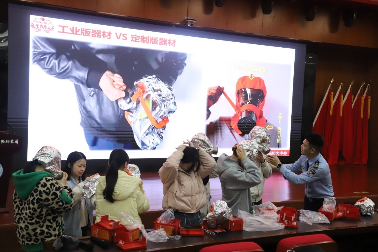在随后的消防安全培训环节,消防教官讲解了火场逃生要点与应急避险技巧。现场还邀请志愿者上台,演示并指导正确佩戴防毒面罩。理论学习后,在水生所北门广场进行了灭火器实操演练。同学们积极参与实操,轮番上阵协力扑灭模拟火桶,切实提升了应对初期火灾的能力。