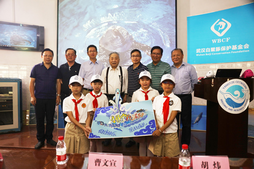 水生所和武汉白鱀豚保护基金会(以下简称基金会)为这头小江豚举办了简单而温馨的庆祝活动。水生所曹文宣院士、胡炜副所长,农业部长江流域渔政监督管理办公室资环处娄巍立副处长以及湖北省水产局、湖北省林业局、湖北省科协等相关单位负责人,长春街小学的学生代表、媒体和企业代表等参加了本次活动。