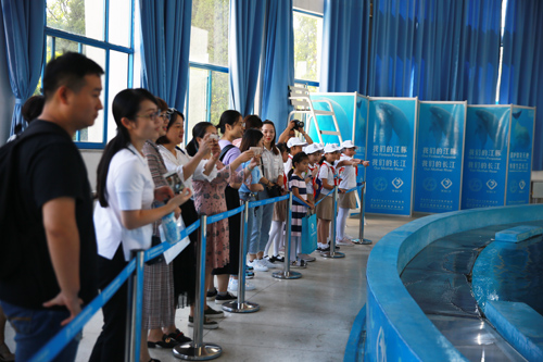 武汉长春街小学的师生代表近距离参观江豚(高宝燕摄)