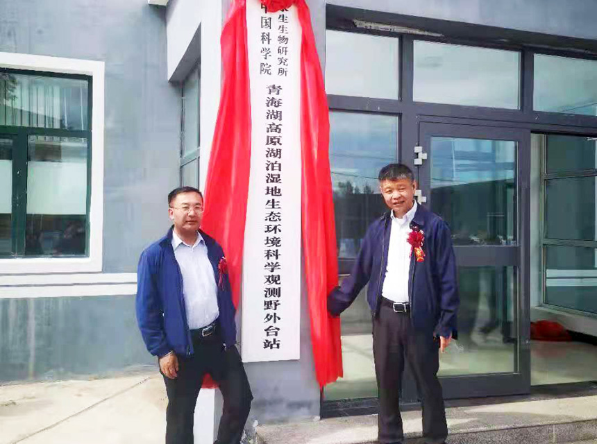 高静宇副局长和殷战所长共同为中国科学院水生生物研究所青海湖高原湖泊湿地生态环境科学观测野外台站揭牌