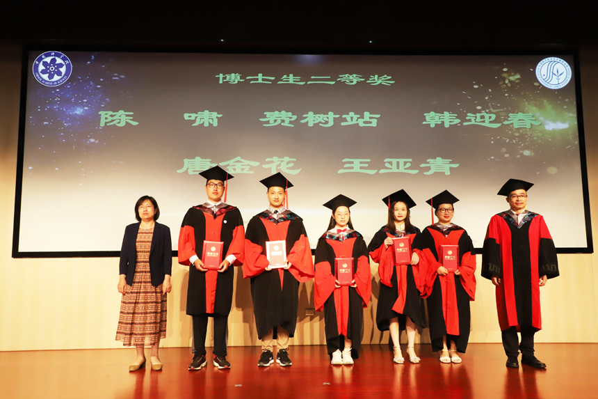 梁琼书记和胡炜副所长为获得奖学金的毕业生颁奖