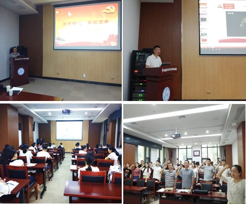 五中心第一党支部书记龙勇同志介绍了主题党日活动的主旨、流程和安排。五中心第二党支部书记吴南同志主持活动,介绍和解读习近平总书记在党的十九大报告中关于“不忘初心,牢记使命”讲话精神。全体与会同志学习并合唱了《不忘初心》歌曲,观看了《建党伟业》和《人民的名义》的影片片段,通过回顾中国共产党成立的伟大历史性时刻,重温初心、坚定使命,警示广大党员同志要自觉抵制各种诱惑。