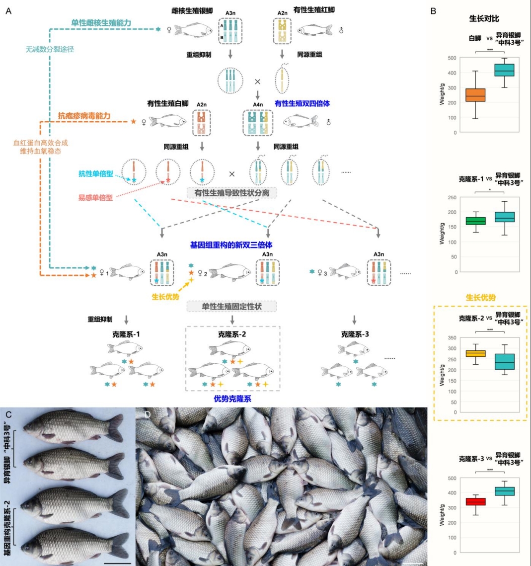水生所通过操控有性-单性生殖转换创制基因组重构的高抗高产新多倍体