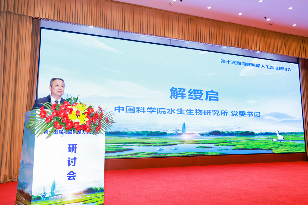 开幕式上,水生所党委书记解绶启致欢迎辞。中国地质大学(武汉)王焰新院士、台湾湿地学会荣誉理事长林幸助、(台湾)中山大学水资源研究中心杨磊教授、武汉纺织大学科学技术发展院副院长张本龚、山东师范大学校长张建、江西省中国科学院庐山植物园副主任冯晨、山东省生态环境保护督察专员张可、中国科学院国际合作局副局长吴艳分别致辞。开幕式由水生所党委副书记梁琼主持。武汉理工大学教授/墨西哥科学院院士(外籍)宋少先、中国生态文明研究与促进会会长张波、东北师范大学教授盛连喜、中国科学院海峡两岸科技合作中心主任李芳芳、台湾大学李鸿源教授和台湾“中研院”陈章波、谢蕙莲研究员等参加会议及有关活动。