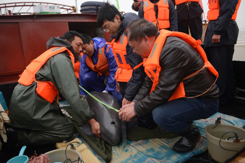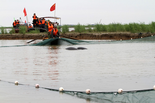 农业部长江渔政监督管理办公室(以下简称“长江办”)近日正式启动“长江江豚迁地保护工程”,并于3月11日在江西鄱阳湖开始长江江豚捕捞迁出行动。受长江办委托,中国科学院水生生物研究所担当本次行动的技术支撑和主要执行者。截止3月20日江豚捕捞行动已结束,此次行动共捕捞江豚37头次,经体检筛选出的8头江豚将迁入湘鄂两省交界的集成垸/何王庙和湖北石首天鹅洲两个长江江豚迁地保护区。