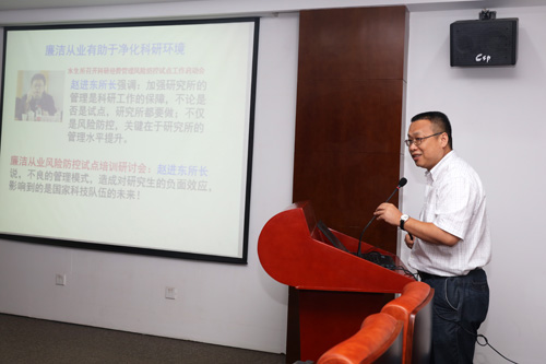 袁东副局长在总结发言中强调,各单位要把廉洁从业风险防控转化为研究所的内在需求,坚持风险导向,将风险防控关口前移,不要让风险变成问题。廉洁从业风险防控工作的首要目标是促进研究所战略发展的中心工作,促进研究所中心工作是前提,风险防控工作需要坚持,需要常抓不懈。